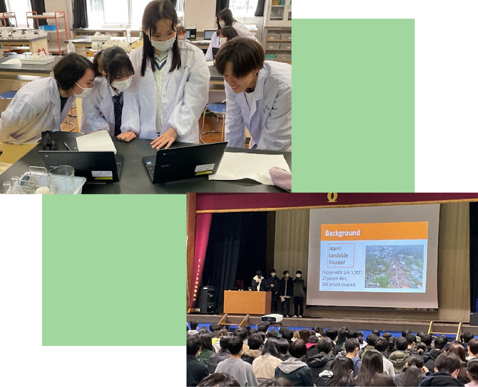 基礎からしっかりと研究の手法を身につけ、2年次にはグループ研究に挑戦します。2月に行われる千里フェスタではその成果を発表します。