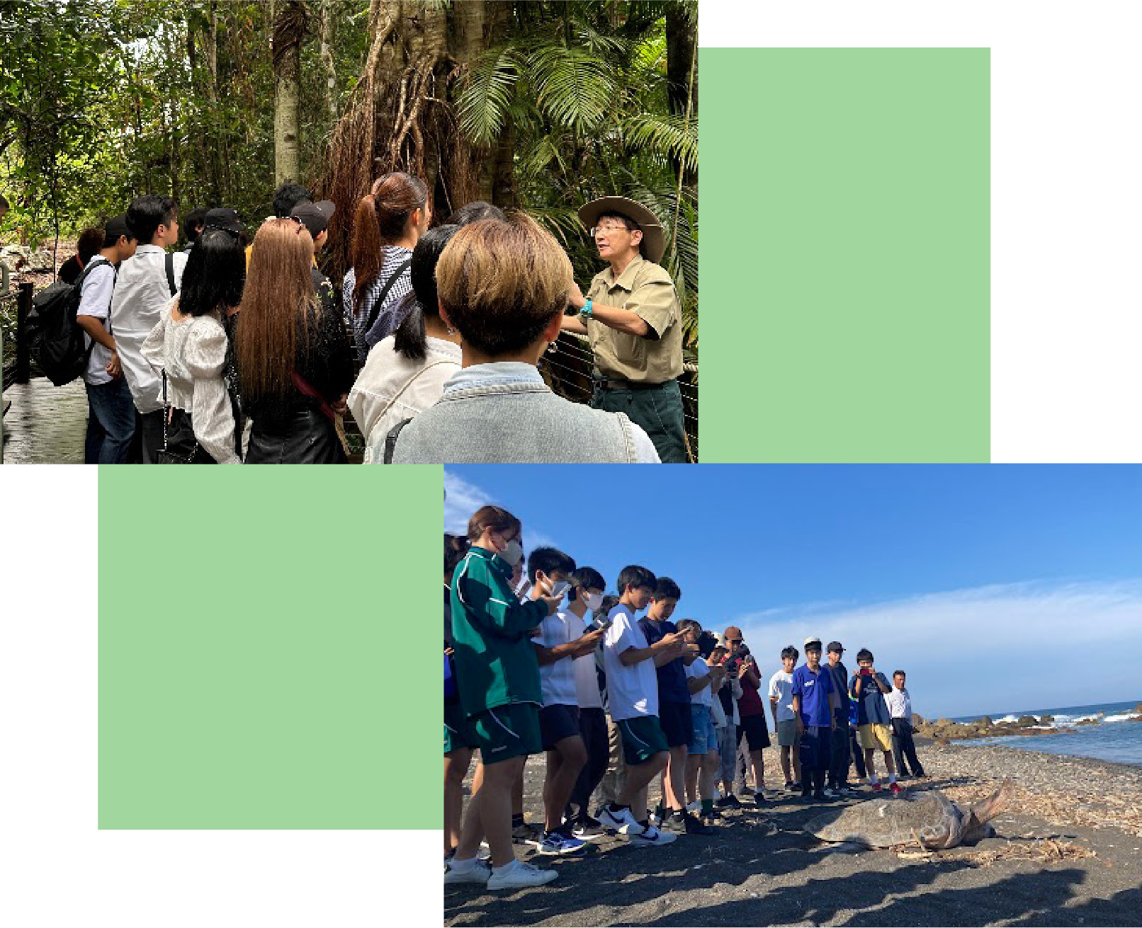 世界の大学、研究所、企業では日々新しい研究が行われ、その成果が社会に還元されています。興味を持ったら、講演や施設見学を通してその先端技術に触れてみましょう。修学旅行では日本を飛び出して世界自然遺産を訪れます。