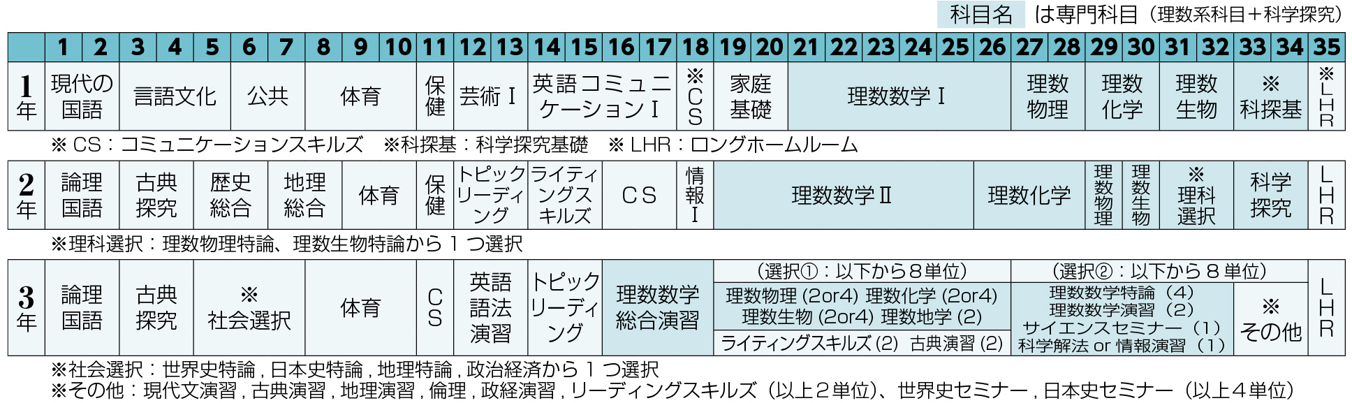 一般的な学校より3〜5単位多い週35単位の授業を行っています。これにより、普通科高校と同じだけの授業を行いながら、 専門学科ならではの多彩で特徴的な授業を実施することができています。
